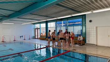 Wir machen uns fit für die nächste Segelsaison! Diesmal beim Schwimmtraining im Lausitzbad. Hier haben wir Kondition, Ausdauer und Kraft trainiert. Unser Trainer Fabian hat uns dabei als Rettungsschwimmer abgesichert. Dazu gab es von ihm Sprint- und Tauchübungen auf der 25 m Bahn. Unser Jugendwart Stephan, selbst bei der Wasserwacht, hat hilfreiche Tipps zur Schwimmtechnik und vielfältige Übungen mit uns durchgeführt. Alle waren sich einig: das war ein tolles ergänzendes Training für unsere Segler:innen! Fortsetzung folgt daher direkt am Samstag, 06.01.2024. Ihr wollt auch dabei sein? Meldet euch gern beim Jugendwart.